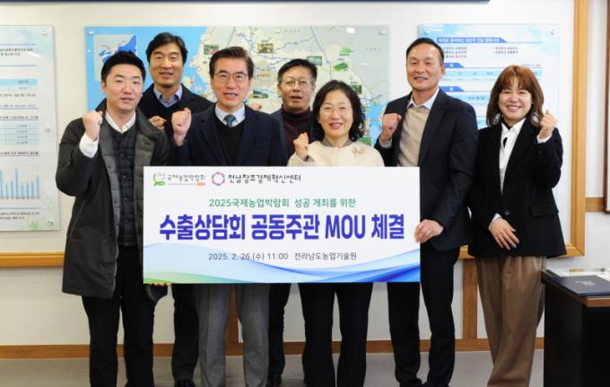 [È£³²´º½º¶óÀÎ = ¼ÀºÈ« ±âÀÚ] Àü¶ó³²µµ ±¹Á¦³ó¾÷¹Ú¶÷ȸ(ÀÌ»çÀå ¸íâȯ ÇàÁ¤ºÎÁö»ç)´Â 2025 ±¹Á¦³ó¾÷¹Ú¶÷ȸ¿¡¼ ¿¸®´Â ÇØ¿Ü¹ÙÀÌ¾î ¼öÃâ»ó´ãȸÀÇ ¼º°ø °³ÃÖ¸¦ À§ÇØ Àü³²Ã¢Á¶°æÁ¦Çõ½Å¼¾ÅÍ(´ëÇ¥ÀÌ»ç °Á¤¹ü)¿Í 26ÀÏ ¾÷¹«Çù¾àÀ» Çß´Ù.