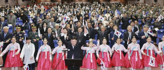 [È£³²´º½º¶óÀÎ = ¼ÀºÈ« ±âÀÚ] ÀüºÏƯº°ÀÚÄ¡µµ´Â Á¦106ÁÖ³â 3.1ÀýÀ» ¸Â¾Æ 1ÀÏ ¿ÀÀü 10½Ã µµÃ» °ø¿¬Àå 3Ãþ¿¡¼ µ¶¸³À¯°øÀÚ À¯Á·, µµ³»¿Ü ÁÖ¿äÀλç, ±¹±ºÀ庴, Çлý µî 900¿© ¸íÀÌ Âü¼®ÇØ 3.1¿îµ¿ÀÇ ¼þ°íÇÑ Àǹ̸¦ µÇ»õ±â´Â ½Ã°£À» °¡Á³´Ù.