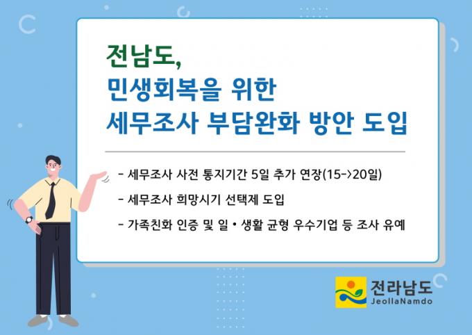 [È£³²´º½º¶óÀÎ = ¼ÀºÈ« ±âÀÚ] Àü¶ó³²µµ´Â 2025³â Áö¹æ¼¼ Á¤±â ¼¼¹«Á¶»ç ´ë»ó 60°³ ¹ýÀÎÀ» ¼±Á¤, Á¶»ç ½Ã±â¸¦ ¼±ÅÃÅä·Ï Çϰí, °¡Á·Ä£È±â¾÷ Á¶»ç¸¦ À¯¿¹ÇÏ´Â µî ±â¾÷ÀÇ °æ¿µ ºÎ´ãÀ» ÁÙÀÌ°í ¹Î»ý°æÁ¦¸¦ ȸº¹Çϱâ À§ÇÑ ´ëÃ¥À» ¸¶·ÃÇØ ÃßÁøÇÑ´Ù°í ¹àÇû´Ù.