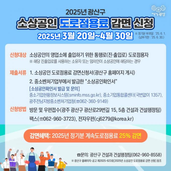 ±¤»ê±¸´Â 4¿ù 30ÀϱîÁö µµ·ÎÁ¡¿ë·á °¨¸é ½ÅûÀ» ¹Þ°í, Á¤±âºÐ µµ·ÎÁ¡¿ë·á´Â 6¿ù¿¡ ºÎ°ú ÈÄ °íÁö¼¸¦ ¹ß¼ÛÇÒ ¿¹Á¤ÀÌ´Ù. ¼Ò»ó°øÀÎ µµ·ÎÁ¡¿ë·á °¨¸é ½Åû ¹× Á¤±âºÐ µµ·ÎÁ¡¿ë·á ºÎ°ú¿¡ ´ëÇÑ ÀÚ¼¼ÇÑ »çÇ×Àº ±¤»ê±¸ °Ç¼³°ú °Ç¼³ÇàÁ¤ÆÀ(062-960-8558)À¸·Î ¹®ÀÇÇÏ¸é µÈ´Ù.