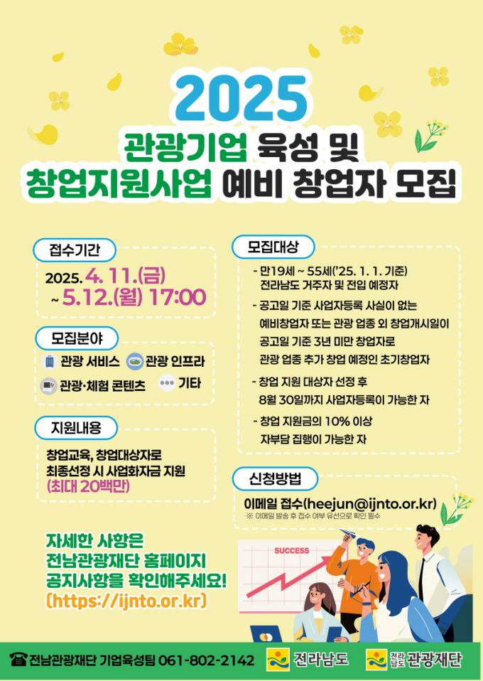 [È£³²´º½º¶óÀÎ = ¼ÀºÈ« ±âÀÚ] Àü¶ó³²µµ´Â Àü³²°ü±¤Àç´Ü°ú ÇÔ²² °ü±¤ ºÐ¾ß Âü½ÅÇÑ ¾ÆÀ̵ð¾î¿Í ½ÇÇà·ÂÀ» °®Ãá ¿¹ºñâ¾÷ÀÚ¸¦ ¹ß±¼¡¤Áö¿øÇϱâ À§ÇÑ ¡®2025 °ü±¤±â¾÷ À°¼º ¹× â¾÷ Áö¿ø»ç¾÷¡¯ Âü°¡ÀÚ¸¦ 5¿ù 12ÀϱîÁö ÇÑ ´Þ¿©°£ ¸ðÁýÇÑ´Ù°í ¹àÇû´Ù.
