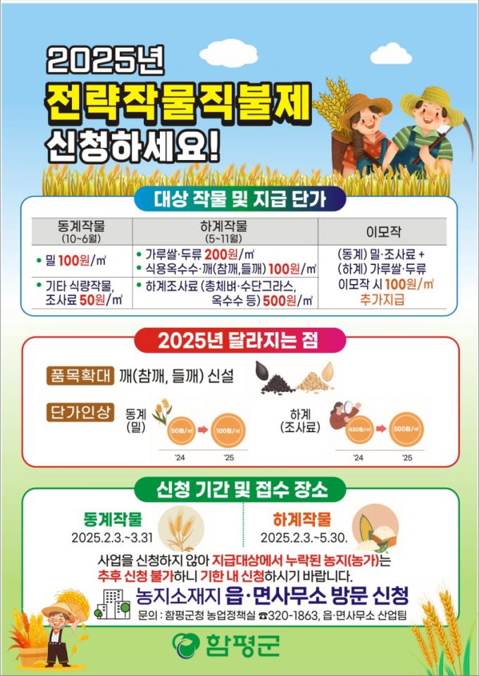 ÇÔÆò±ºÀº 11ÀÏ ¡°Àü·« ÀÛ¹° Á÷ºÒÁ¦(ÇϰèÀÛ¹°), ³í ŸÀÛ¹° Àç¹è Áö¿ø»ç¾÷, º Àç¹è¸éÀû Á¶Á¤Á¦µµ µî °¢Á¾ Áö¿øÀ» Èñ¸ÁÇÏ´Â ³ó¾÷ÀÎÀº ¿À´Â 5¿ù 30ÀϱîÁö ³óÁö ¼ÒÀçÁö °üÇÒ À¾¡¤¸é»ç¹«¼Ò¿¡¼ ½ÅûÇÒ ¼ö ÀÖ´Ù¡±°í ¹àÇû´Ù.