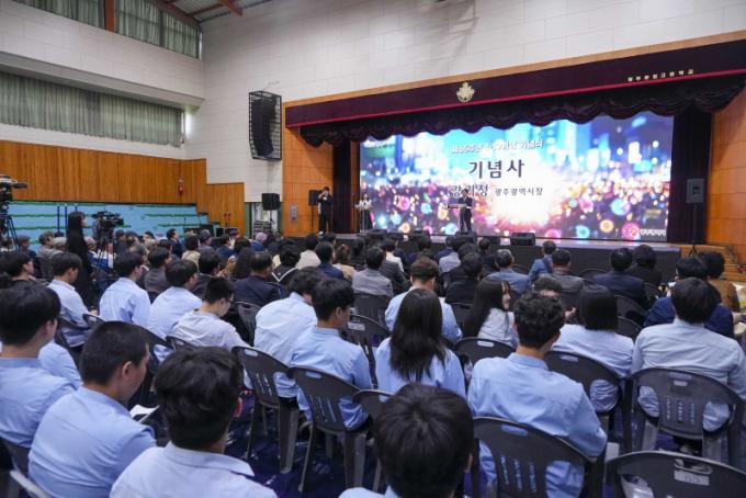 °±âÁ¤ ±¤ÁÖ±¤¿ª½ÃÀåÀº 19ÀÏ ±¤ÁÖÇü¸¶À̽ºÅÍ°í ±¤ÁÖ°ø¾÷°íµîÇб³¿¡¼ ¿¸° ¡®Á¦65ÁÖ³â 4¡¤19Çõ¸í ±â³ä½Ä¡¯¿¡¼ ´ëÇѹα¹ Çå¹ý Àü¹®¿¡ ¼ö·ÏµÈ 4¡¤19Çõ¸í Á¤½ÅÀ» ¾ð±ÞÇϰí, 5¡¤18Á¤½Å Çå¹ý Àü¹® ¼ö·ÏÀÇ Á߿伺À» ´Ù½Ã Çѹø °Á¶Çß´Ù.