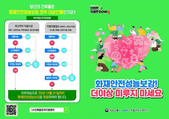 ¡®ÈÀç¾ÈÀü¼º´É º¸°»ç¾÷¡¯Àº ÈÀç¾ÈÀü ±âÁØÀÌ °ÈµÇ±â Àü¿¡ Áö¾îÁø °ÇÃ๰ÀÇ ¾ÈÀüÀ» È®º¸Çϱâ À§ÇØ ºÒ¿¡ Ÿ±â ½¬¿î °ÇÃ๰ÀÇ ¿ÜÀåÀç ±³Ã¼¿Í ½ºÇÁ¸µÅ¬·¯ ¼³Ä¡ µîÀ» Áö¿øÇÏ´Â »ç¾÷À¸·Î ¿ÃÇØ ¸»±îÁö ½ÃÇàµÈ´Ù.