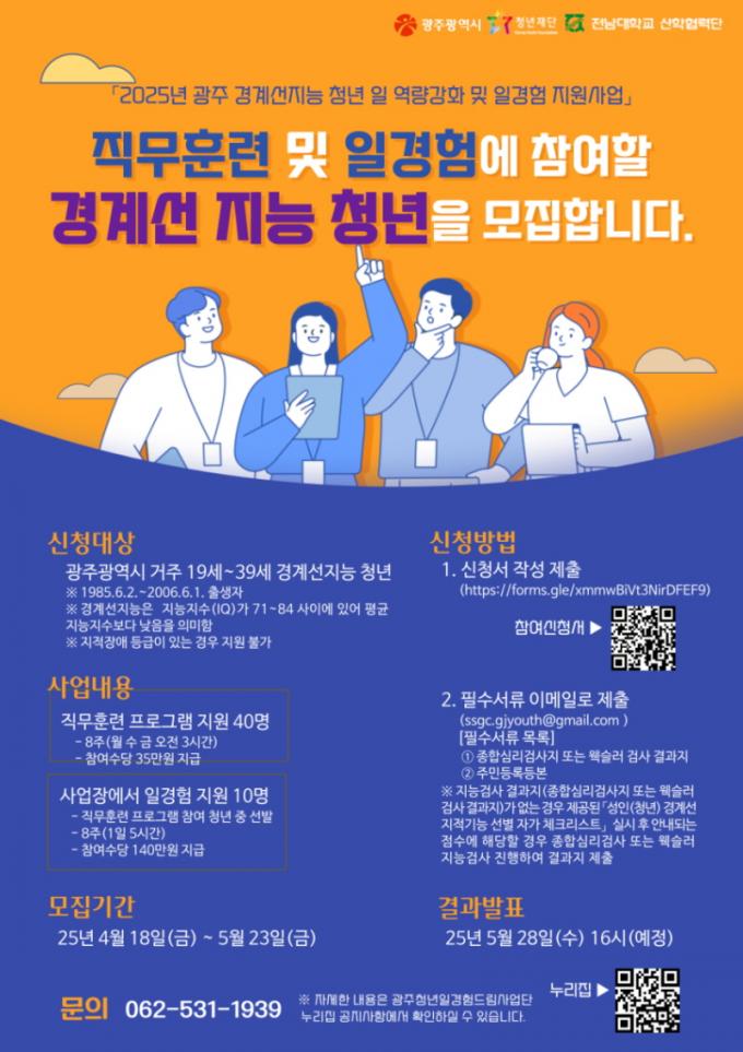 ±¤ÁÖ±¤¿ª½Ã(½ÃÀå °±âÁ¤)´Â û³âÀç´Ü, Àü³²´ëÇб³ »êÇÐÇù·Â´Ü°ú ¼ÕÀâ°í °æ°è¼±Áö´É û³âµé¿¡°Ô ÀϰæÇè ±âȸ¸¦ Á¦°øÇÏ´Â ¡®°æ°è¼±Áö´É û³â ÀÏ¿ª·® °È Áö¿ø ½Ã¹ü»ç¾÷¡¯À» ÃßÁø, ¿À´Â 5¿ù23ÀϱîÁö Èñ¸ÁÀÚ¸¦ ¸ðÁýÇÑ´Ù.