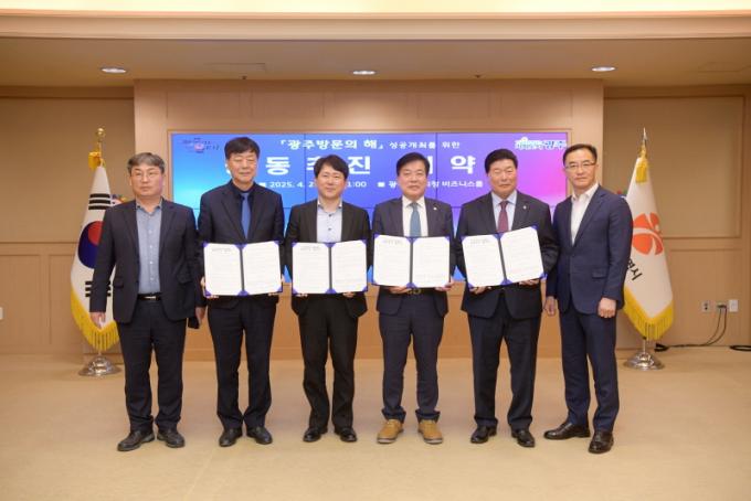 ±¤ÁÖ±¤¿ª½Ã(½ÃÀå °±âÁ¤)´Â 25ÀÏ ½Ãû ºñÁî´Ï½º·ë¿¡¼ ©ÅÇѱ¹¿Ü½Ä¾÷Áß¾Óȸ ±¤ÁÖ±¤¿ª½ÃÁöȸ, ©Å´ëÇѼ÷¹Ú¾÷Áß¾Óȸ ±¤ÁÖ±¤¿ª½ÃÁöȸ, ©Å±¤ÁÖ°ü±¤Çùȸ¿Í ¡®2025 ±¤Áֹ湮ÀÇ ÇØ ¼º°ø ÃßÁøÀ» À§ÇÑ Çù¾à¡¯À» ü°áÇß´Ù.