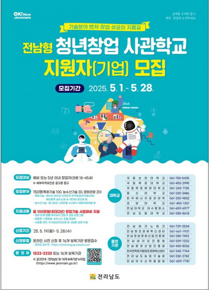 [È£³²´º½º¶óÀÎ = ¼ÀºÈ« ±âÀÚ] Àü¶ó³²µµ´Â ´ëÇлý°ú û³âÀ» Áß½ÉÀ¸·Î Áö¿ª º¥Ã³Ã¢¾÷ ±â¹ÝÀ» ´ÙÁö°í, ¹Ì·¡ ÷´ÜºÐ¾ß ¿ì¼ö±â¼ú â¾÷À» À¯ÀÎÇϱâ À§ÇØ ±¤¿ªÀÚÄ¡´Üü ÃÖÃÊ·Î ¡®Àü³²Çü û³ââ¾÷»ç°üÇб³¡¯¸¦ ¿î¿µÅ°·Î Çϰí, Áö¿øÀÚ(±â¾÷)¸¦ 5¿ù 28ÀϱîÁö ¸ðÁýÇÑ´Ù.