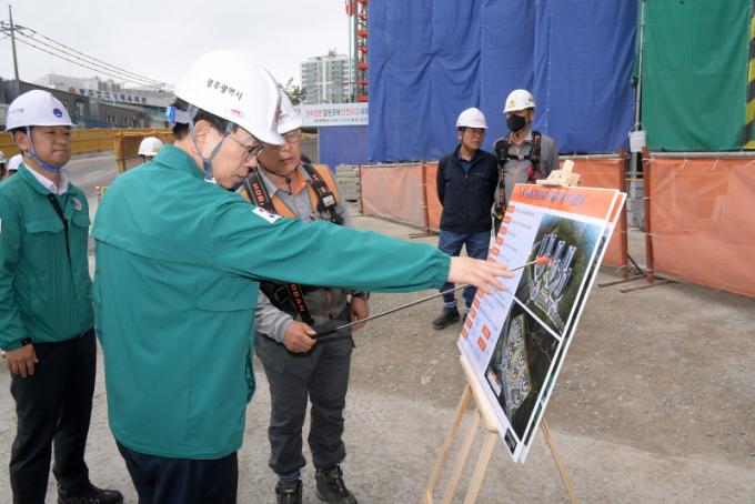 [È£³²´º½º¶óÀÎ = ¼ÀºÈ« ±âÀÚ] ±¤ÁÖ±¤¿ª½Ã(½ÃÀå °±âÁ¤)´Â 15ÀÏ ¿ÀÈÄ ¼±¸ dz¾Ïµ¿ Áß¾Ó±Ù¸°°ø¿ø(2Áö±¸) °øµ¿ÁÖÅà ½ÅÃà°ø»ç ÇöÀå¿¡¼ ÇàÁ¤ºÎ½ÃÀå ÁÖÀç ¡®¹Î°ü ÇÕµ¿ ¾ÈÀüÁ¡°Ë¡¯À» ½Ç½ÃÇß´Ù.