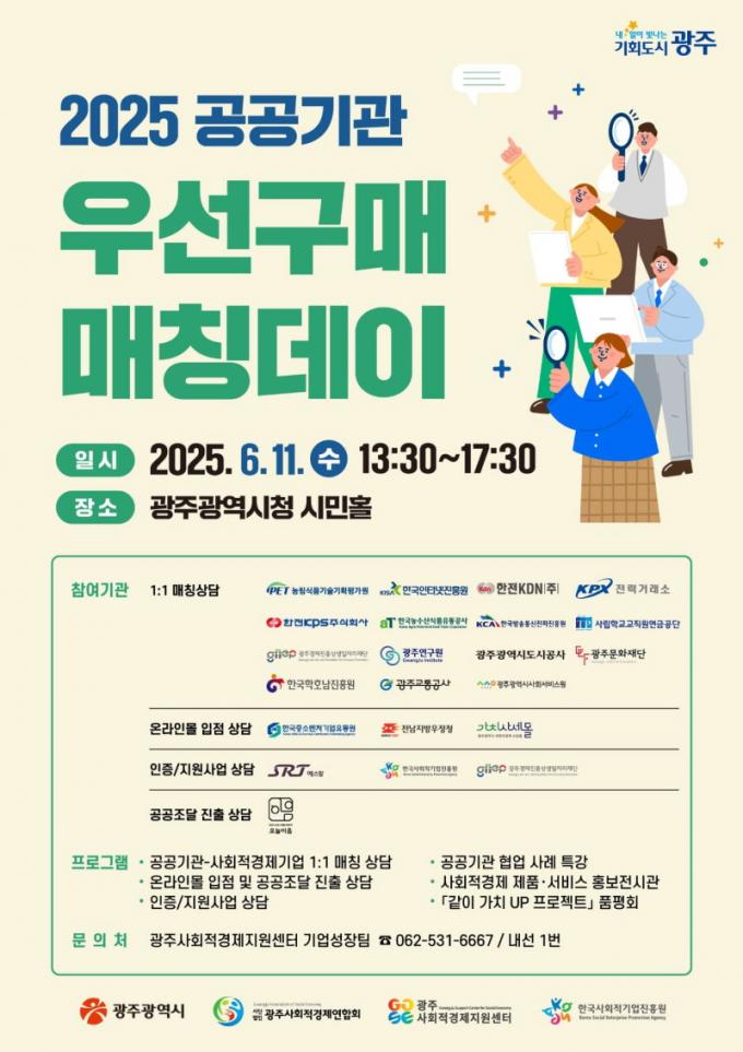 [È£³²´º½º¶óÀÎ = ¼ÀºÈ« ±âÀÚ] ±¤ÁÖ±¤¿ª½Ã(½ÃÀå °±âÁ¤)´Â ±¤ÁÖ»çȸÀû°æÁ¦Áö¿ø¼¾ÅÍ¿Í ÇÔ²² 11ÀÏ ½Ãû ½Ã¹ÎȦ¿¡¼ ¡®2025 °ø°ø±â°ü-»çȸÀû°æÁ¦±â¾÷ ¿ì¼±±¸¸Å ¸Åε¥ÀÌ¡¯¸¦ °³ÃÖÇÑ´Ù.