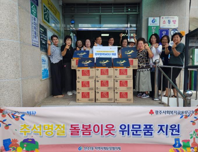 [È£³²´º½º¶óÀÎ = ¼ÀºÈ« ±âÀÚ] ±¤ÁÖ µ¿±¸(ûÀå ÀÓÅÃ) »ê¼ö1µ¿ Áö¿ª»çȸº¸ÀåÇùÀÇü(À§¿øÀå À̼ºÇà)´Â Áö³ 16ÀÏ ¡®Ãß¼® ¸íÀý µ¹º½ ÀÌ¿ô À§¹®Ç° Àü´Þ½Ä¡¯À» ¿°í µ¹º½ ÀÌ¿ô 98¼¼´ë¿¡ ½Ä·áǰ(ÂüÄ¡ ĵ) ¼±¹° ¼¼Æ®¿Í ÀüÅë½ÃÀå »óǰ±ÇÀ» Àü´ÞÇß´Ù°í ¹àÇû´Ù.