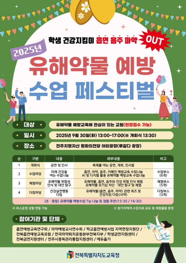 ÀüºÏ±³À°Ã»Àº ¿À´Â 30ÀÏ ÀüÁÖ Ä¡¸íÀÚ»ê ÆòÈÀÇÀü´ç ¾ß¿Ü±¤Àå¿¡¼ ¡®2025. À¯Çؾ๰ ¿¹¹æ ¼ö¾÷ Æä½ºÆ¼¹ú¡¯À» °³ÃÖÇÑ´Ù°í 24ÀÏ ¹àÇû´Ù.