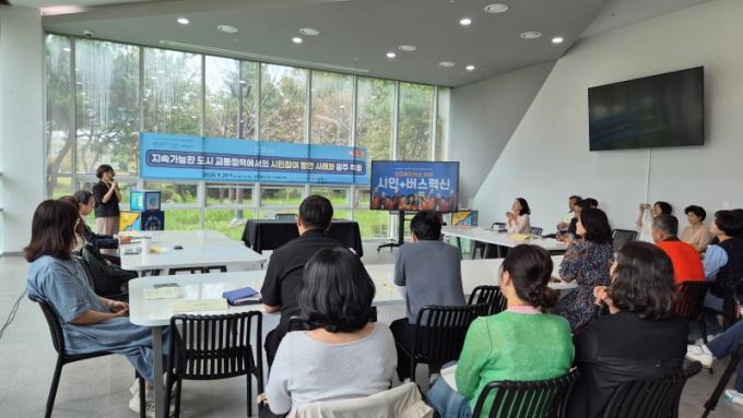 À̳¯ Æ÷·³¿¡¼ ÁÖÁ¦ ¹ßÇ¥¸¦ ÇÑ °¼Ò¿µ ÀüÁÖÁö¼Ó°¡´É¹ßÀüÇùÀÇȸ »ç¹«±¹ÀåÀº ¹ö½º ³ë¼± °³Æí °úÁ¤¿¡¼ °¢°è°¢Ãþ ½Ã¹ÎµðÀÚÀÌ³Ê 400¿©¸íÀÌ Âü¿©ÇÑ ¡®ÇØÇǹö½º ÇÁ·ÎÁ§Æ®¡¯¸¦ ´ëÇ¥ »ç·Ê·Î ¼Ò°³ÇÏ¸ç ´Ù¾çÇÑ ½Ã¹Î Âü¿©¿Í Àǰ߼ö·Å °úÁ¤À» °øÀ¯Çß´Ù.