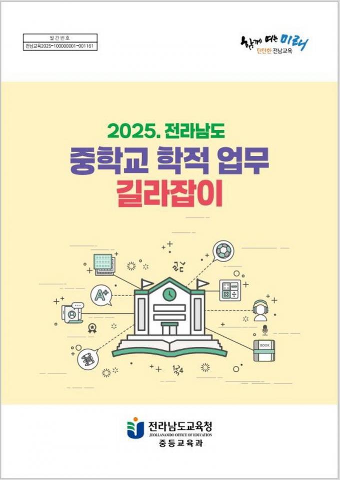 [È£³²´º½º¶óÀÎ = ¼ÀºÈ« ±âÀÚ] Àü¶ó³²µµ±³À°Ã»(±³À°°¨ ±è´ëÁß)Àº ÁßÇб³ ÇÐÀû ¾÷¹«ÀÇ Ã¼°èÀû ¿î¿µ°ú ±³¿øÀÇ ½Ç¹« Áö¿ø °È¸¦ À§ÇØ ¡®2025 Àü¶ó³²µµ ÁßÇб³ ÇÐÀû ¾÷¹« ±æ¶óÀâÀÌ¡¯¸¦ ¹ß°£ÇØ º¸±ÞÇß´Ù°í ¹àÇû´Ù.