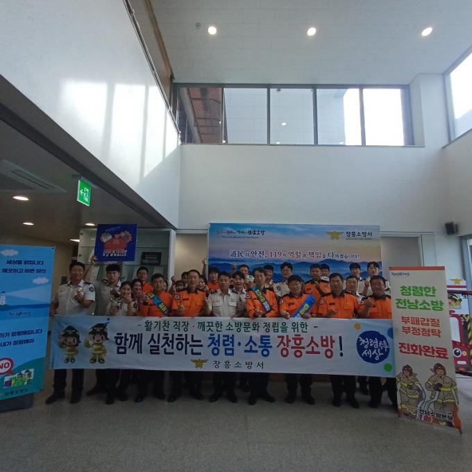 À̳¯ ¾ÆÄ§ ÀåÈï¼Ò¹æ¼ ÃâÀÔ±¸¿¡¼´Â ¼Ò¹æ¼Àå°ú °¢ °ú(ÆÀ)ÀåÀÌ Á÷Á¢ ³ª¼ Ãâ±ÙÇÏ´Â Á÷¿øµé¿¡°Ô ´Ù°ú ²Ù·¯¹Ì¸¦ Àü´ÞÇϸç û·Å ½ÇõÀÇ Àǹ̸¦ ÀüÇß´Ù. û»ç Àü±¤ÆÇ¿¡´Â ¡°±ú²ýÇÑ ¸¶À½, µû¶æÇÑ ³ª´® û·ÅÇÑ ¸íÀý º¸³»¼¼¿ä!¡±¶ó´Â ¹®±¸°¡ ¼ÛÃâµÅ û·ÅÇÑ ¸íÀý ¸Þ½ÃÁö¸¦ ÇÑ´«¿¡ Àü´ÞÇß´Ù.