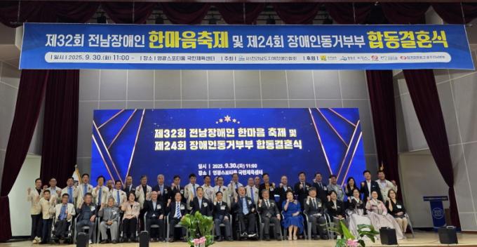 [È£³²´º½º¶óÀÎ = ¼ÀºÈ« ±âÀÚ] Àü¶ó³²µµ´Â Áö³ 9¿ù 30ÀÏ ¿µ±¤½ºÆ÷Ƽ¿ò±¹¹ÎüÀ°¼¾ÅÍ¿¡¼ Á¦32ȸ Àü³²Àå¾ÖÀÎÇѸ¶À½ÃàÁ¦¿Í Á¦24ȸ Àå¾ÖÀε¿°ÅºÎºÎ ÇÕµ¿°áÈ¥½ÄÀ» ¼ºÈ²¸®¿¡ °³ÃÖÇß´Ù°í ¹àÇû´Ù.