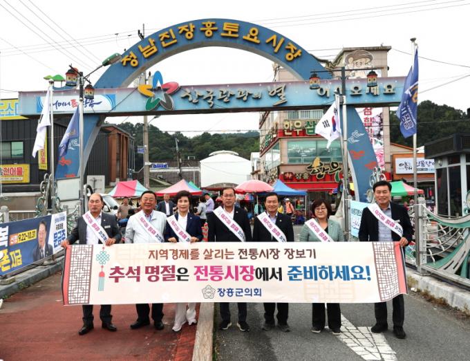 [È£³²´º½º¶óÀÎ = ¼ÀºÈ« ±âÀÚ] ÀåÈﱺÀÇȸ(ÀÇÀå ±èÀç½Â)´Â 10¿ù 2ÀÏ, Áö¿ª ´ëÇ¥ ÀüÅë½ÃÀåÀÎ Á¤³²Áø Åä¿ä½ÃÀå¿¡¼ ¡®Ãß¼® ¸ÂÀÌ À庸±â Çà»ç¡¯¸¦ ¿¾ú´Ù.