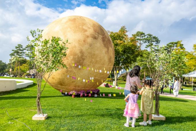 ¼øÃµ¸¸±¹°¡Á¤¿ø È£¼öÁ¤¿ø °ø¿¬Àå¿¡ ¼³Ä¡µÈ ´ëÇü º¸¸§´Þ Á¶Çü¹° ¾Õ¿¡¼ ÇÑ °¡Á·ÀÌ ¼Ò¿ø ÂÊÁö¸¦ ´Þ°í ÀÖ´Ù.