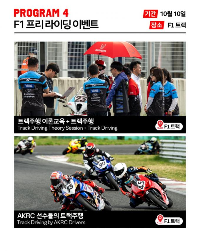 10ÀÏ¿¡´Â ÀÏ¹Ý ¹ÙÀÌÅ© ¶óÀÌ´õµéÀ» ´ë»óÀ¸·Î Àü¹® ¼±¼öµéÀÇ À̷б³À°ÀÌ ÁøÇàµÈ´Ù. ¼Å¶ ÁÖÇàÀ» ÅëÇØ ¾ÈÀüÇÑ ÁÖÇà ±â¼úÀ» ½ÀµæÇÒ ¼ö ÀÖÀ¸¸ç, ¸ðÅͽºÆ÷Ã÷ Àúº¯ È®´ë¿Í °ÇÀüÇÑ ¹ÙÀÌÅ© ¹®ÈÇü¼º¿¡ ±àÁ¤ÀûÀÎ ¿µÇâÀ» ÁÙ °ÍÀ¸·Î ±â´ëµÈ´Ù.