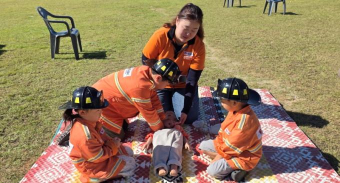 ¼Ò¹æ°ü Á÷¾÷üÇè¿¡ ³ª¼± ¾ÆÀ̵éÀÌ ¼Ò¹æ°ü º¹ÀåÀ» ÀÔ°í ÀÎ¸í±¸Á¶ Ȱµ¿À» Á÷Á¢ ¹è¿ì°í üÇèÇÏ´Â ¸ð½À.(»çÁøÁ¦°ø-³ªÁÖ½Ã)