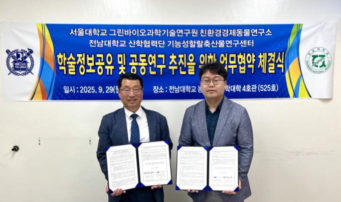 Àü³²´ë »êÇÐÇù·Â´Ü ±â´É¼ºÇÒ¶öÃà»ê¹°¿¬±¸¼¾ÅÍ(¼¾ÅÍÀå Áø±¸º¹)´Â Áö³ 9¿ù 29ÀÏ ¼¿ï´ëÇб³ ±×¸°¹ÙÀÌ¿À°úÇбâ¼ú¿¬±¸¿ø ģȯ°æ°æÁ¦µ¿¹°¿¬±¸¼Ò(¼ÒÀå ¹Úº´Ã¶)¿Í ÇмúÁ¤º¸ °øÀ¯ ¹× °øµ¿¿¬±¸ ÃßÁøÀ» À§ÇÑ ¾÷¹«Çù¾à(MOU)À» ü°áÇß´Ù.