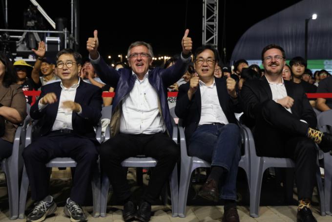 ÇÑÆí, Å丶½º ±×¸®½º ±³¼ö´Â °£´ãȸ ÀÌÈÄ ¡®2025 ³ªÁÖ¿µ»ê°ÃàÁ¦¡¯°¡ ¿¸®°í ÀÖ´Â ¿µ»ê°Á¤¿øÀ» ¹æ¹®ÇØ °»ó±¸ ºÎ½ÃÀå°ú ÇÔ²² Á¤¿øÀ» µÑ·¯º¸°í Àú³á °ø¿¬À¸·Î ¿¸° ÄÉÀÌÆË ÄܼƮ¸¦ °ü¶÷Çϸç ÃàÁ¦ ºÐÀ§±â¸¦ Áñ°å´Ù.