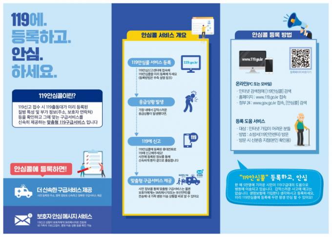 ¼ºñ½º µî·ÏÀº 119¾È½ÉÄÝ ´©¸®Áý(u119.nfa.go.kr) ¶Ç´Â °¡±î¿î ¼Ò¹æ¼¸¦ ÅëÇØ °¡´ÉÇϸç, µî·Ï ÀÌÈÄ¿¡´Â ¾ðÁ¦ ¾îµð¼³ª 119 ½Å°í ¶§ ÀÚµ¿À¸·Î Á¤º¸°¡ ¿¬°èµÅ ÃÖÀûÀÇ ÀÀ±Þóġ¸¦ ¹ÞÀ» ¼ö ÀÖ´Ù.