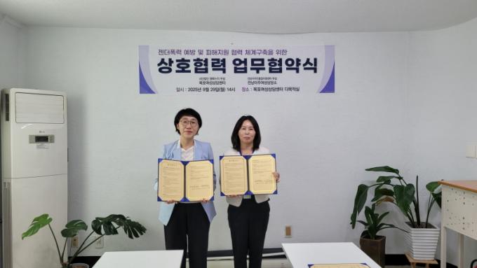 [È£³²´º½º¶óÀÎ = ¼ÀºÈ« ±âÀÚ] Àü³²ÀÌÁÖ¿©¼º»ó´ã¼Ò(¼ÒÀå ¿øÁø¼±)´Â 2025³â 9¿ù 29ÀÏ, ¸ñÆ÷¿©¼º»ó´ã¼¾ÅÍ, Àü³²µðÁöÅмº¹üÁËÇÇÇØÀÚÁö¿ø¼¾ÅÍ(¼¾ÅÍÀå ¹®¿ÁÈñ)¿Í ÇÔ²² Æø·Â ÇÇÇØÀÚ º¸È£ ¹× ÅëÇÕÀû Áö¿øÀ» À§ÇÑ ¾÷¹«Çù¾à(MOU)À» ü°áÇß´Ù.