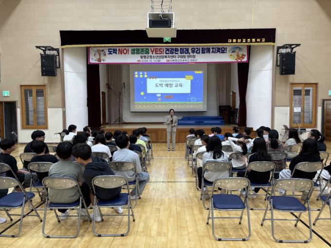 [È£³²´º½º¶óÀÎ = ¼ÀºÈ« ±âÀÚ] ÇÔÆò±ºÃ»¼Ò³â»ó´ãº¹Áö¼¾ÅÍ¡¤ÇÔÆò±ºÇб³¹Ûû¼Ò³âÁö¿ø¼¾ÅÍ ±¸Å¸² ¼¾ÅÍÀåÀº Á÷Á¢ °»ç·Î ³ª¼ Áö³ 10¿ù 13ÀÏ ´ëµ¿Çâ±³ÃʵîÇб³ Àü±³»ýÀ» ´ë»óÀ¸·Î ¡®Ã»¼Ò³â µµ¹Ú ¿¹¹æ ¹× »ý¸íÁ¸Áß ±³À°¡¯À» ¼º°øÀûÀ¸·Î ÁøÇàÇß´Ù°í ¹àÇû´Ù.