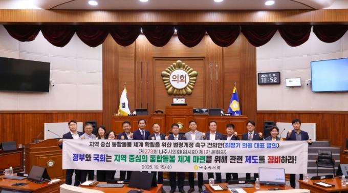 [È£³²´º½º¶óÀÎ = ¼ÀºÈ« ±âÀÚ] ³ªÁÖ½ÃÀÇȸ(ÀÇÀå ÀÌÀç³²)´Â 15ÀÏ Á¦273ȸ ÀÓ½Ãȸ Á¦1Â÷ º»È¸ÀǸ¦ ¿°í ¡®Áö¿ª Á᫐ ÅëÇÕµ¹º½ ü°è È®¸³À» À§ÇÑ ¹ý·É°³Á¤ Ã˱¸ °ÇÀǾȡ¯À» äÅÃÇß´Ù.