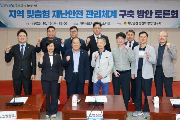 [È£³²´º½º¶óÀÎ = ¼ÀºÈ« ±âÀÚ] Àü¶ó³²µµÀÇȸ ÀÇ¿ø ¿¬±¸´ÜüÀΡ¸Àç³¾ÈÀü ¼±ÁøÈ ¹æ¾È ¿¬±¸È¸¡¹´Â Áö³ 10¿ù 15ÀÏ Àü¶ó³²µµÀÇȸ ÃÊÀǽǿ¡¼ °Á¤ÀÏ ´ëÇ¥ÀÇ¿ø(±¤¾ç2) ÁÖÀç·Î ¡®Áö¿ª ¸ÂÃãÇü Àç³¾ÈÀü °ü¸®Ã¼°è ±¸Ãà ¹æ¾È¡¯¿¡ ´ëÇÑ Åä·Ðȸ¸¦ °³ÃÖÇß´Ù.