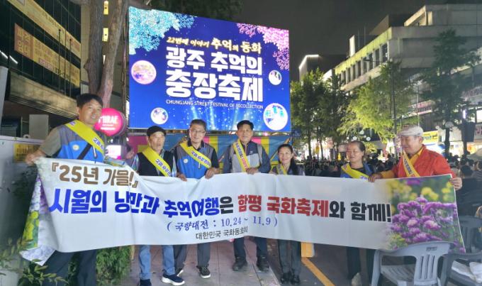 ±¹Èµ¿È£È¸´Â ÃàÁ¦ÀÇ ¼º°øÀûÀÎ °³ÃÖ¿Í °ü±¤°´ À¯Ä¡¸¦ À§ÇØ ¾î±ú¶ì¸¦ Âø¿ëÇϰí Çà»çÀå °÷°÷À» µ¹¸ç ±¹È ÀÛǰ Àü½Ã, ȸÀü¸ñ¸¶ Æ÷ÅäÁ¸, ¸íǰºÐÀç°ü µî ÁÖ¿ä ÄÜÅÙÃ÷¸¦ ¼Ò°³Çϸç ÃàÁ¦ÀÇ ¸Å·ÂÀ» ¾Ë·È´Ù.