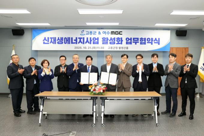 [È£³²´º½º¶óÀÎ = ¼ÀºÈ« ±âÀÚ] °íÈﱺ(±º¼ö °ø¿µ¹Î)ÀÌ ¿©¼ö¹®È¹æ¼Û(»çÀå ÀÌÈ£ÀÎ)°ú Áö¿ªÀÇ ½ÅÀç»ý¿¡³ÊÁö Ȱ¼ºÈ¿Í ģȯ°æ ¿¡³ÊÁö »ê¾÷ À°¼ºÀ» À§ÇØ ¼ÕÀ» ¸ÂÀâ¾Ò´Ù.