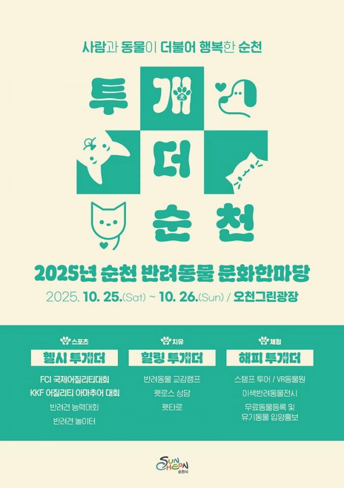 [È£³²´º½º¶óÀÎ = ¼ÀºÈ« ±âÀÚ] ¼øÃµ½Ã(½ÃÀå ³ë°ü±Ô)´Â ¿À´Â 25ÀÏ(Åä), 26ÀÏ(ÀÏ) ¾çÀϰ£ ¿Àõ±×¸°±¤Àå¿¡¼ ¹Ý·Áµ¿¹°Àº ¹°·Ð ¹Ý·ÁÀΰú ºñ¹Ý·ÁÀÎÀÌ ÇÔ²² Áñ±â´Â ¡®2025³â ¹Ý·Áµ¿¹° ¹®ÈÇѸ¶´ç Çà»ç¡¯¸¦ °³ÃÖÇÑ´Ù°í ¹àÇû´Ù.