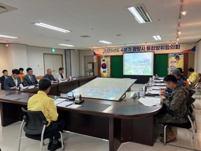 [È£³²´º½º¶óÀÎ = ¼ÀºÈ« ±âÀÚ] ±¤¾ç½Ã´Â 10¿ù 20ÀÏ ½Ãû Àü½ÃÁ¾ÇÕ»óȲ½Ç¿¡¼ ¹Î¡¤°ü¡¤±º¡¤°æ µî ÁÖ¿ä ±â°üÀåÀÌ Âü¼®ÇÑ °¡¿îµ¥ ¡®2025³â 4ºÐ±â ÅëÇÕ¹æÀ§ÇùÀÇȸ¡¯¸¦ °³ÃÖÇß´Ù°í ¹àÇû´Ù.