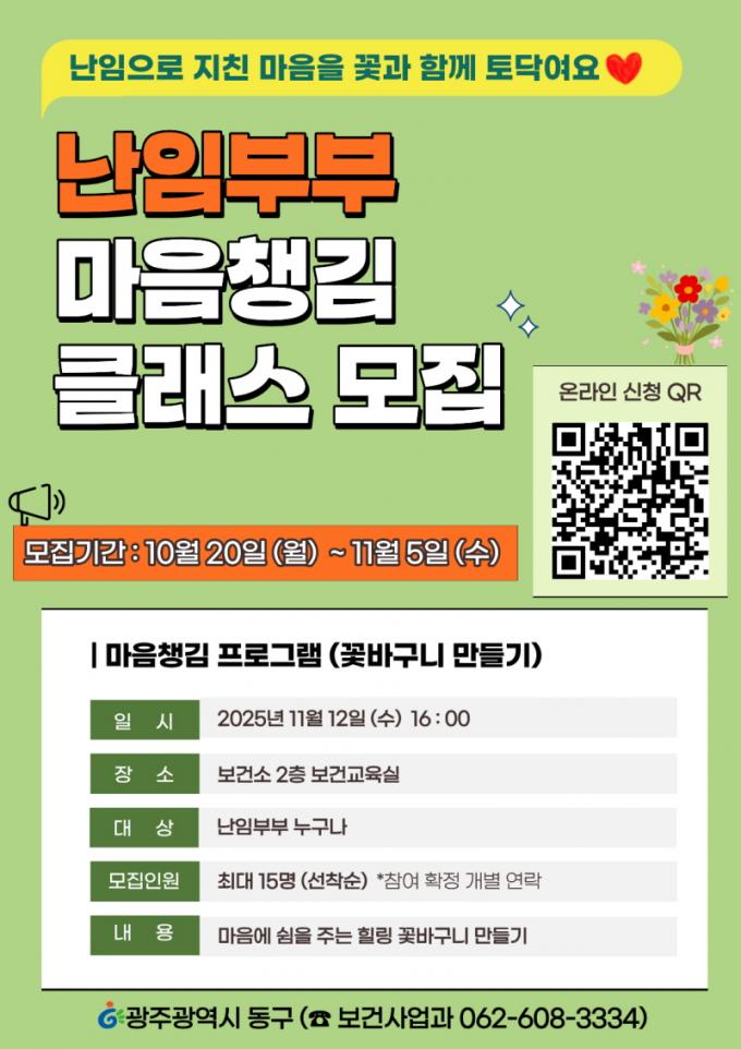 [È£³²´º½º¶óÀÎ = ¼­ÀºÈ« ±âÀÚ] ±¤ÁÖ µ¿±¸(ûÀå ÀÓÅÃ)´Â ³­ÀÓÀ¸·Î ¾î·Á¿òÀ» °Þ°í ÀÖ´Â ºÎºÎµéÀÇ ½É¸®Àû ¾ÈÁ¤À» µ½±â À§ÇØ ¿À´Â 11¿ù 12ÀÏ ¡®³­ÀӺκΠ¸¶À½Ã¬±è Ŭ·¡½º¡¯¸¦ ¿î¿µÇÑ´Ù°í ¹àÇû´Ù.