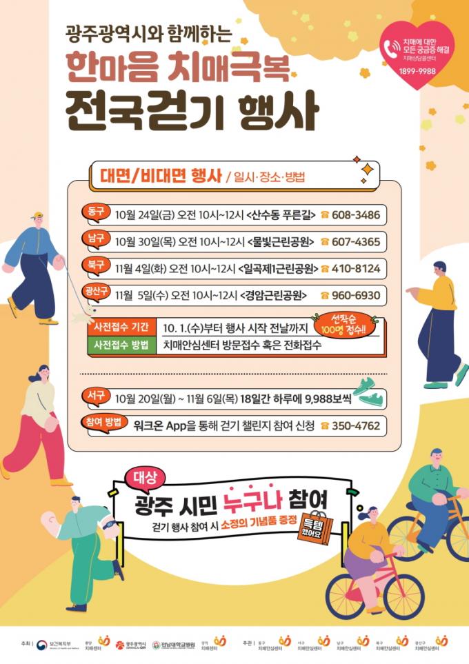 ÀÌ Çà»ç´Â ±¤ÁÖ½Ã¿Í Àü³²´ëÇб³º´¿ø, ±¤ÁÖ±¤¿ªÄ¡¸Å¼¾ÅͰ¡ °øµ¿ÁÖÃÖÇϰí 5°³ ÀÚÄ¡±¸ º¸°Ç¼Ò Ä¡¸Å¾È½É¼¾ÅͰ¡ ÁÖ°üÇÑ´Ù. ÇÁ·Î±×·¥Àº ¡ãÄ¡¸Å¿¹¹æÃ¼Á¶ ¡ã¹Ù¸£°Ô °È±â ¹æ¹ý ¾È³» ¡ã´À¸®°Ô °È±â üÇè µîÀ¸·Î ±¸¼ºµÆÀ¸¸ç, ´Ù¾çÇÑ Ä¡¸Å¿¹¹æ È«º¸È°µ¿µµ ÁøÇàµÈ´Ù. Çà»ç ´çÀÏ °È±â ±¸°£À» ¿ÏÁÖÇÑ Âü°¡ÀÚ¿¡°Ô´Â ¼ÒÁ¤ÀÇ ±â³äǰÀÌ Á¦°øµÈ´Ù.