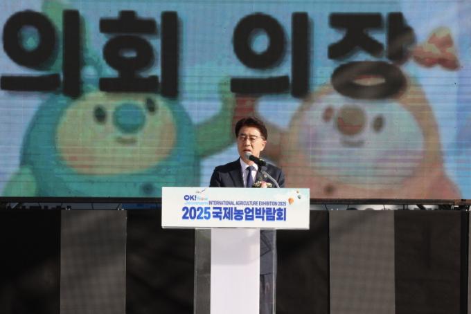 [È£³²´º½º¶óÀÎ = ¼ÀºÈ« ±âÀÚ] ±èÅÂ±Õ Àü³²µµÀÇÀåÀº 10¿ù 23ÀÏ Àü¶ó³²µµ ³ó¾÷±â¼ú¿ø Ư¼³¹«´ë¿¡¼ °³ÃÖµÈ ¡®2025 ±¹Á¦³ó¾÷¹Ú¶÷ȸ °³¸·½Ä¡¯¿¡ Âü¼®Çß´Ù.