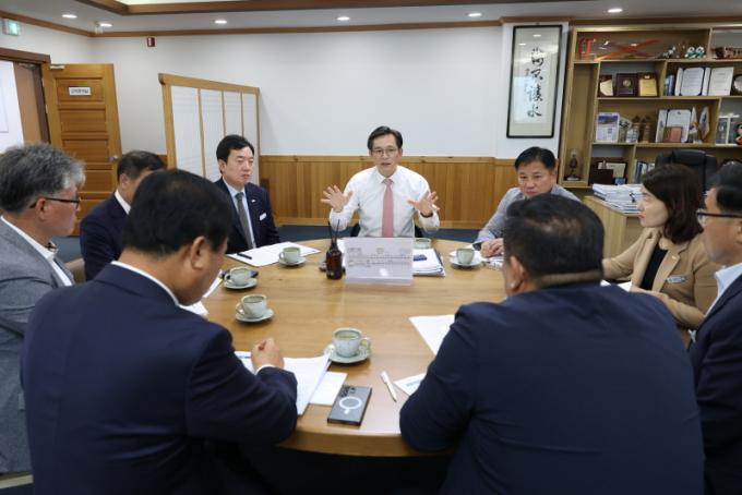 À̳¯ °£´ãȸ¿¡¼ ¿µ¾Ï±ºÀº Àü¶ó³²µµÀÇ¿ø¿¡°Ô ¡®¿¡³ÊÁö Áö»êÁö¼Ò ±×¸°½ÃƼ 100¡¯, ³ó¾î¹Î °øÀͼö´ç Áö±Þ È®´ë, ±¹Á¦ ¹ÙµÏ¿¬¼ö¿ø °Ç¸³ µî ¿ªÁ¡ ½ÃÃ¥À» ¼³¸íÇϰí, µµÁ¤ ¹Ý¿µ ¹× Áö¿ø ¹æ¾È¿¡ ´ëÇØ ÀǰßÀ» ³ª´³´Ù.
