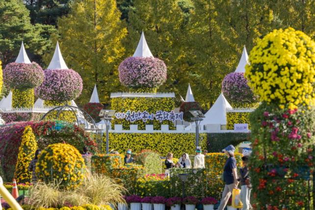 ¿ÃÇØ·Î 22ȸ¸¦ ¸ÂÀº ±¹ÈÃàÁ¦´Â 11¿ù 2ÀϱîÁö 'ÀÍ»ê ¹éÁ¦, ±¹È·Î ²ÉÇÇ¿ì´Ù'¸¦ ÁÖÁ¦·Î ¿¸°´Ù. ¹éÁ¦¹®ÈÀÇ °íÁî³ËÇÑ ¾Æ¸§´Ù¿òÀ» ±¹È Á¶Çü¹°·Î Ç®¾î³½ Á¡ÀÌ Æ¯Â¡ÀÌ´Ù. 8m ³ôÀÌÀÇ ºÀȲÀ» ºñ·ÔÇØ ¹éÁ¦±ÝÁ¾, ¹Ì¸¤»çÁö ¼®Å¾, ³ªºñ±×³× µî ±¹È Á¶Çü¹°Àº ³·°ú ¹ãÀ» °¡¸®Áö ¾Ê°í ±â³ä»çÁøÀ» Âï´Â °ü¶÷°´¿¡°Ô Àα⸦ ²ø°í ÀÖ´Ù.