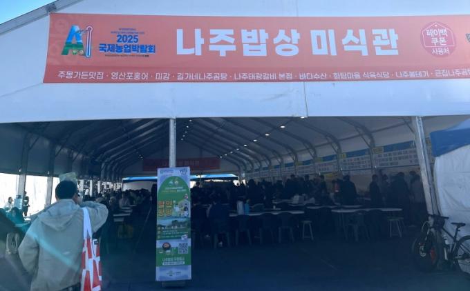 [È£³²´º½º¶óÀÎ = ¼ÀºÈ« ±âÀÚ] ³ªÁÖ½Ã(½ÃÀå À±º´ÅÂ)´Â Áö³ 10¿ù 23ÀϺÎÅÍ 29ÀϱîÁö Àü³²³ó¾÷±â¼ú¿ø¿¡¼ °³ÃÖµÈ ¡®2025 ±¹Á¦³ó¾÷¹Ú¶÷ȸ¡¯¿¡¼ Áö¿ª ´ëÇ¥ ¸ÀÁýÀÌ Âü¿©ÇÑ ¡®³ªÁÖ¹ä»ó ¹Ì½Ä°ü¡¯À» ¿î¿µÇØ ³ªÁÖÀÇ °íÀ¯ÇÑ ¸ÀÀ» ±¹³»¿Ü °ü¶÷°´¿¡°Ô ¼±º¸À̸ç Å« È£ÀÀÀ» ¾ò¾ú´Ù°í ¹àÇû´Ù.
