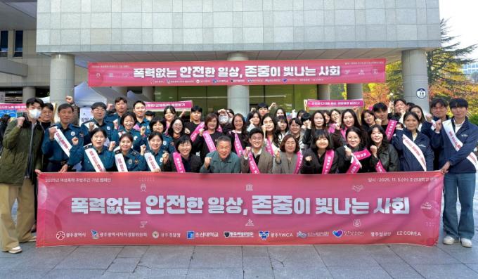 [È£³²´º½º¶óÀÎ = ¼ÀºÈ« ±âÀÚ] ±¤ÁÖ±¤¿ª½Ã(½ÃÀå °±âÁ¤)´Â ¡®¿©¼ºÆø·Â Ãß¹æÁÖ°£¡¯(11¿ù25ÀÏ~12¿ù1ÀÏ)À» ¸Â¾Æ 5ÀÏ Á¶¼±´ëÇб³ Áß¾Óµµ¼°ü ±¤Àå¿¡¼ ¡®Æø·Â ¾ø´Â ¾ÈÀüÇÑ ÀÏ»ó, Á¸ÁßÀÌ ºû³ª´Â »çȸ¡¯¸¦ ÁÖÁ¦·Î ÇÕµ¿ Ä·ÆäÀÎÀ» ½Ç½ÃÇß´Ù.