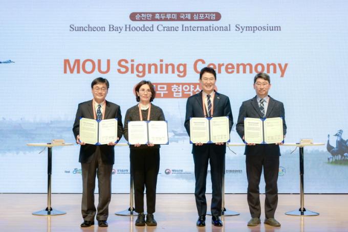 Áö³ 5ÀÏ ¼øÃµ½Ã¡¤±¹Á¦µÎ·ç¹ÌÀç´Ü¡¤Çѱ¹Á¶·ùÇÐȸ¡¤Çѱ¹¹°»õ³×Æ®¿öÅ© °£ ÈæµÎ·ç¹Ì ¼½ÄÁö º¸ÀüÀ» À§ÇÑ 4ÀÚ ¾÷¹«Çù¾àÀ» ü°áÇÏ°í ±â³ä»çÁøÀ» ÃÔ¿µÇϰí ÀÖ´Ù (ÁÂÃøºÎÅÍ Çѱ¹¹°»õ³×Æ®¿öÅ© ´ëÇ¥ À̱⼷, ±¹Á¦µÎ·ç¹ÌÀç´Ü ¾Æ½Ã¾Æ´ã´çÀÚ À§Ä¡¿£, ¼øÃµ½Ã ½ÃÀå ³ë°ü±Ô, (»ç)Çѱ¹Á¶·ùÇÐȸ ȸÀå ¹ÚÁø¿µ)