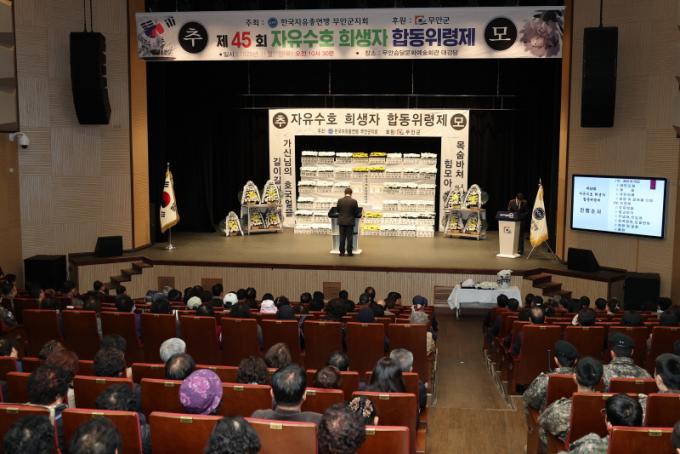 [È£³²´º½º¶óÀÎ = ¼ÀºÈ« ±âÀÚ] ¹«¾È±º(±º¼ö ±è»ê)Àº Áö³ 11ÀÏ ¿ÀÀü ½Â´Þ¹®È¿¹¼úȸ°ü¿¡¼ Çѱ¹ÀÚÀ¯ÃÑ¿¬¸Í ¹«¾È±ºÁöȸ(ÁöȸÀå ¹Ú¿µÀÏ) ÁÖ°üÀ¸·Î ¡°Á¦45ȸ ÀÚÀ¯¼öÈ£ Èñ»ýÀÚ ÇÕµ¿À§·ÉÁ¦¡±¸¦ ¾ö¼÷È÷ °ÅÇàÇß´Ù.