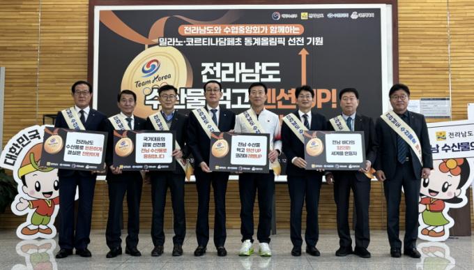 ¹Ú¿µÃ¤ Àü³²µµ ÇØ¾ç¼ö»ê±¹ÀåÀº ¡°À̹ø Çà»ç´Â Àü³² ¼ö»ê¹°ÀÇ ¿ì¼ö¼ºÀ» ³Î¸® ¾Ë¸®°í, ´Ù°¡¿À´Â ¹Ð¶ó³ë µ¿°è¿Ã¸²ÇÈ ¼±¼ö´Ü¿¡°Ô ÈûÂù ÀÀ¿øÀÇ ¸Þ½ÃÁö¸¦ ÀüÇÏ´Â ¶æ±íÀº ÀÚ¸®¡±¶ó¸ç ¡°Àü³²ÀÇ ¼ö»ê¹°Àº ±¹°¡´ëÇ¥ ¼±¼ö´Ü ½Ä´Ü¿¡ ¿À¸¦ Á¤µµ·Î ¸À°ú ¿µ¾çÀÌ ÁÁ°í, ¾ÕÀ¸·Îµµ ûÁ¤ Àü³² ¼ö»ê¹° ºê·£µå À̹ÌÁö ±¸Ãà°ú ÆÇ·Î È®º¸¿¡ ¾ÕÀå¼°Ú´Ù¡±°í ¸»Çß´Ù.