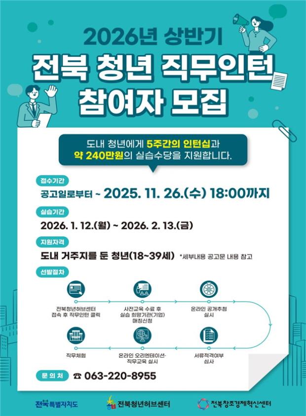 [È£³²´º½º¶óÀÎ = ¼ÀºÈ« ±âÀÚ] ÀüºÏƯº°ÀÚÄ¡µµ¿Í ÀüºÏâÁ¶°æÁ¦Çõ½Å¼¾ÅͰ¡ ¡®2026³â »ó¹Ý±â ÀüºÏ û³â Á÷¹«ÀÎÅÏ¡¯ Âü¿©ÀÚ¸¦ 11¿ù 26ÀϱîÁö ¸ðÁýÇÑ´Ù.