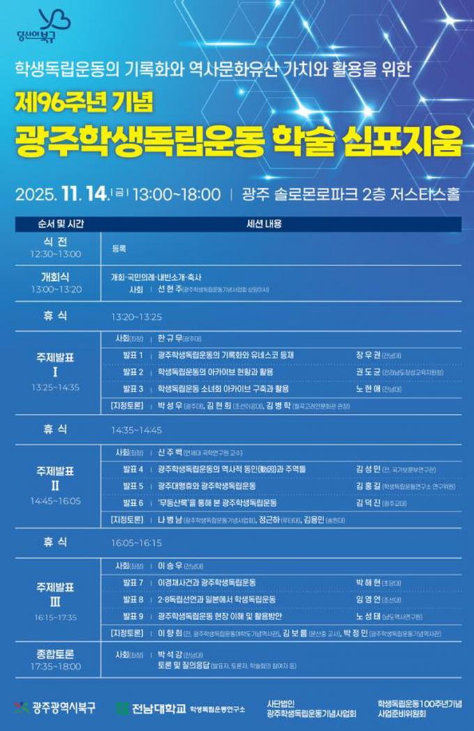 ¼¼¼Çº° ÁÂÀåÀº ÇѱԹ« ±¤ÁÖ´ë ±³¼ö, ½ÅÁÖ¹é ¿¬¼¼´ë ±³¼ö, À̽¿ì Àü³²´ë ±³¼ö°¡ Â÷·Ê´ë·Î ¸Ã¾Æ ¡ãÇлýµ¶¸³¿îµ¿ÀÇ ±â·ÏÈ¿Í À¯³×½ºÄÚ µîÀç ¡ãÇлýµ¶¸³¿îµ¿ÀÇ ¿ª»çÀû µ¿ÀÎ(ÔÑì×)°ú ÁÖ¿ªµé ¡ãÁÖ¿ä »çÀûÁö Ȱ¿ë ¹æ¾È µîÀ» Áß½ÉÀ¸·Î ÁÖÁ¦¹ßÇ¥°¡ ÁøÇàµÈ´Ù.