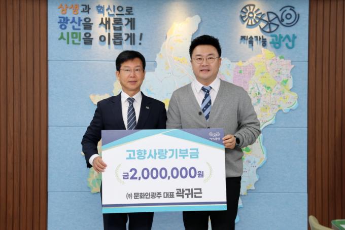 | °û±Í±º ¢ß¹®ÈÀα¤ÁÖ ´ëÇ¥(¿À¸¥ÂÊ)°¡ 13ÀÏ ±¤»ê±¸ °íÇâ»ç¶û±âºÎ±Ý 200¸¸ ¿øÀ» ±âŹÇß´Ù.
