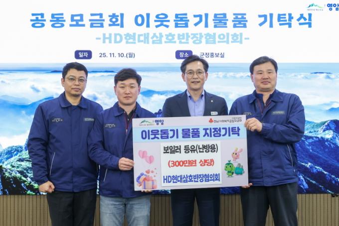 10ÀÏ HDÇö´ë»ïÈ£¹ÝÀåÇùÀÇȸ(ȸÀå ÀÌÁ¤Àç)°¡, ¾î·Á¿î ÀÌ¿ôÀÇ °Ç°ÇÏ°í µû¶æÇÑ °Ü¿ï³ª±â¸¦ À§ÇØ ½á´Þ¶ó¸ç 300¸¸¿ø »ó´çÀÇ ³¹æ¿ë º¸ÀÏ·¯ µîÀ¯¸¦ ¿µ¾Ï±º¿¡ Àü´ÞÇß´Ù.