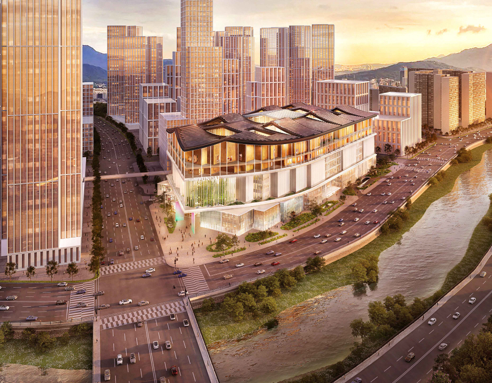 ±¤ÁÖ¿¡ óÀ½ µé¾î¼´Â º¹ÇÕ¼îÇθô ¡®´õÇö´ë ±¤ÁÖ¡¯´Â ¿¬¸éÀû 27¸¸2955§³, ÁöÇÏ 6Ãþ~Áö»ó 8Ãþ ±Ô¸ðÀÇ º¹ÇÕ¹®È°ø°£ÀÌ´Ù. ¼¼°èÀû °ÇÃà°¡ ¡®Ç츣Á¶±× ¾Ø µå ¸þ·Õ(Herzog & de Meuron)¡¯ÀÇ ¼³°è·Î ³»¡¤¿ÜºÎ °ø°£ÀÇ ¿Ï¼ºµµ¸¦ ³ô¿´´Ù. ¼¿ï ¿©Àǵµ ¡®´õÇö´ë ¼¿ï¡¯º¸´Ù ¾à 1.4¹è Å« ±Ô¸ð·Î, 2027³â ¸» ¿Ï°øÇØ 2028³â Á¤½Ä °³Á¡À» ¸ñÇ¥·Î ÇÑ´Ù.