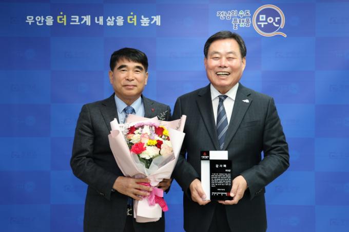 [È£³²´º½º¶óÀÎ = ¼ÀºÈ« ±âÀÚ] Àü³² ¹«¾È±º(±º¼ö ±è»ê)Àº Áö³ 6ÀÏ ³ª´®¹®È È®»ê¿¡ ±â¿©ÇÑ °ø·Î¸¦ ÀÎÁ¤¹Þ¾Æ Àü³²»çȸº¹Áö°øµ¿¸ð±Ýȸ(ȸÀå Ç㿵ȣ)·ÎºÎÅÍ °¨»çÆÐ¸¦ ¼ö»óÇß´Ù.